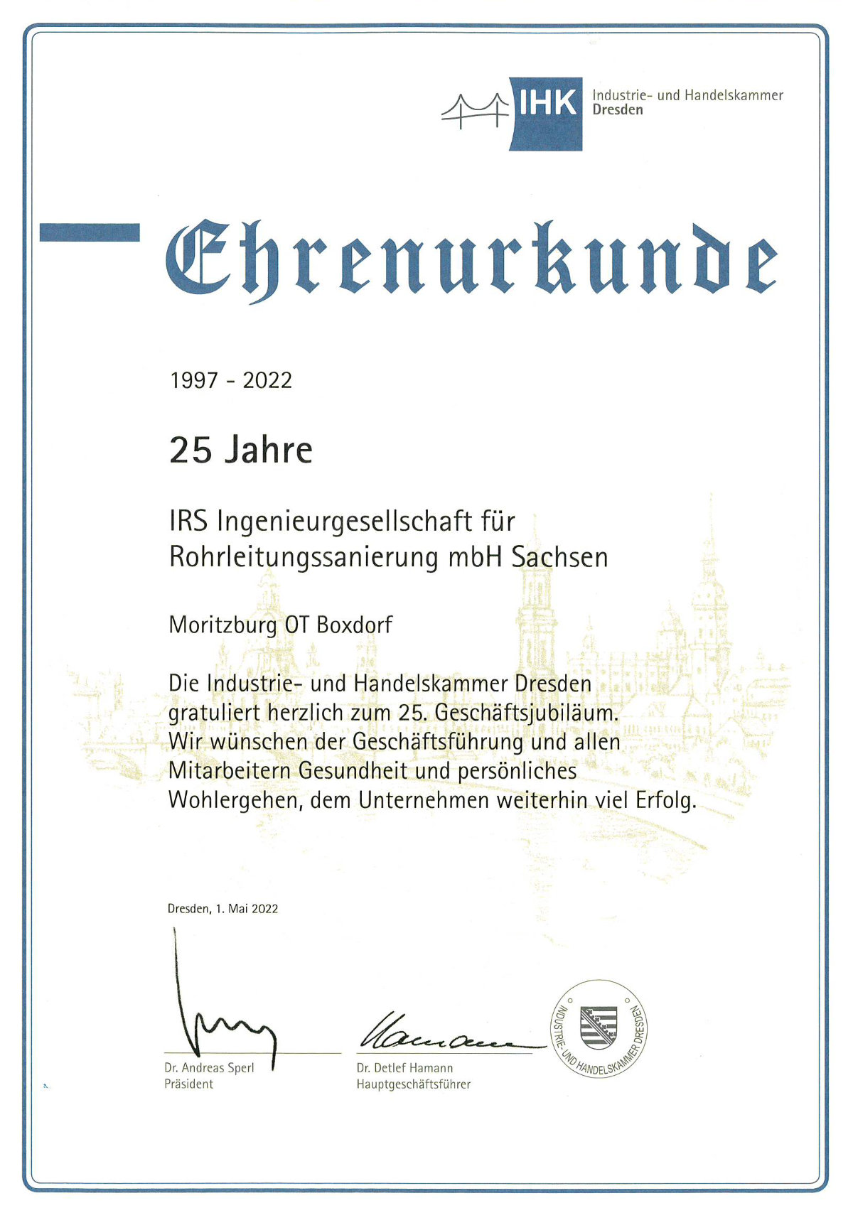 Die Ingenieurgesellschaft für Rohrleitungssanierung mbH Sachsen wird 25!