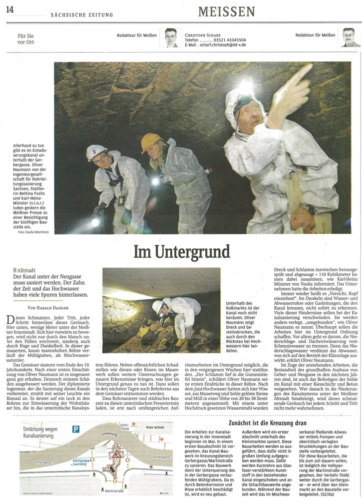 Meissen Altstadt - Der Kanal unter der Neugasse muss saniert werden. Der Zahn der Zeit und das Hochwasser haben viele Spuren hinterlassen.