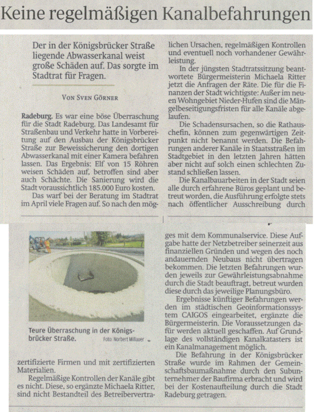 Ergebnisse künftiger Kanalbefahrungen werden durch die IRS mbH Sachsen im städtischen Geoinformationssystem CAIGOS eingearbeitet.